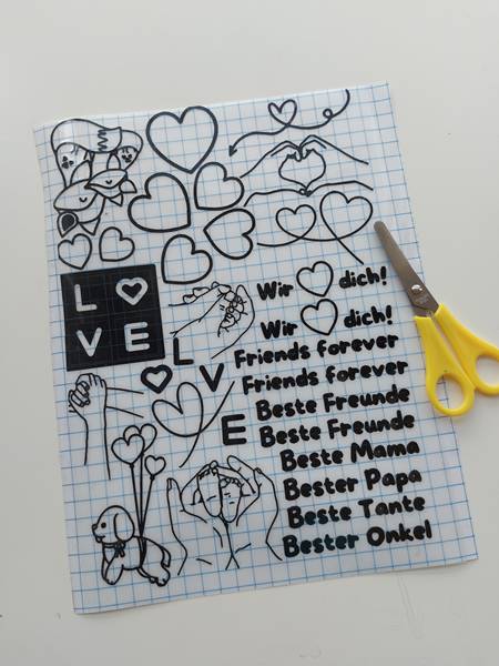 Sag mir, was Dir vorschwebt – ein Lieblingsspruch, ein Name, ein kleines Symbol oder vielleicht etwas ganz Individuelles? Wir bringen Dein persönliches Motiv auf eine praktische Transferfolie, die Du ganz einfach auf das gewünschte Objekt kleben kannst. So bekommst Du in wenigen Minuten ein Ergebnis, das aussieht wie liebevoll handgemacht – ohne aufwendiges Plotten oder Kleben.